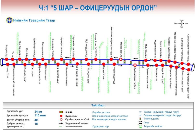 Тухайн Ч:1 чиглэл нь иргэдийн зорчих эрэлтийг хангаж, үйлчилгээний хүртээмжийг нэмэгдүүлж, хүлээлтийг тэглэх зорилготой юм. Иймд иргэд та бүхэн доорх зураглалын дагуу зорчино уу.