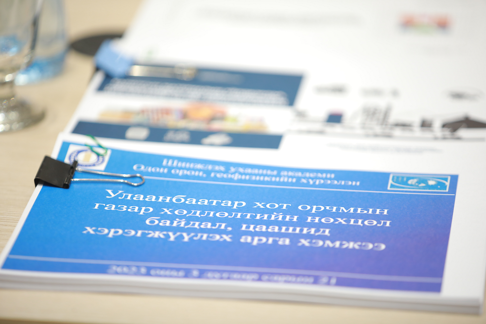 Шинжлэх ухааны академийн Одон орон, геофизикийн хүрээлэнгийн эрдэм шинжилгээний тэргүүлэх ажилтан, доктор С.Батсайхан “Улаанбаатар хот орчмын газар хөдлөлийн нөхцөл байдал, цаашид хэрэгжүүлэх арга хэмжээ” сэдвээр илтгэл хэлэлцүүллээ. Тэрбээр газар хөдлөлтийн давтамж сүүлийн жилүүдэд нэмэгдсээр байгаа тухай онцолж, эрсдэл гамшгаас сэргийлэх, мөн хөрсний суулт, нуралт зэрэг хүчин зүйлийг тооцоолж барилга байгууламж барих чухлыг онцолсон. Түүнчлэн газар хөдлөлтийн эрсдэлээс сэргийлэх чиглэлд авч хэрэгжүүлэх арга хэмжээ, хийх ажлын талаарх мэдээллийг тэрбээр хуваалцлаа.