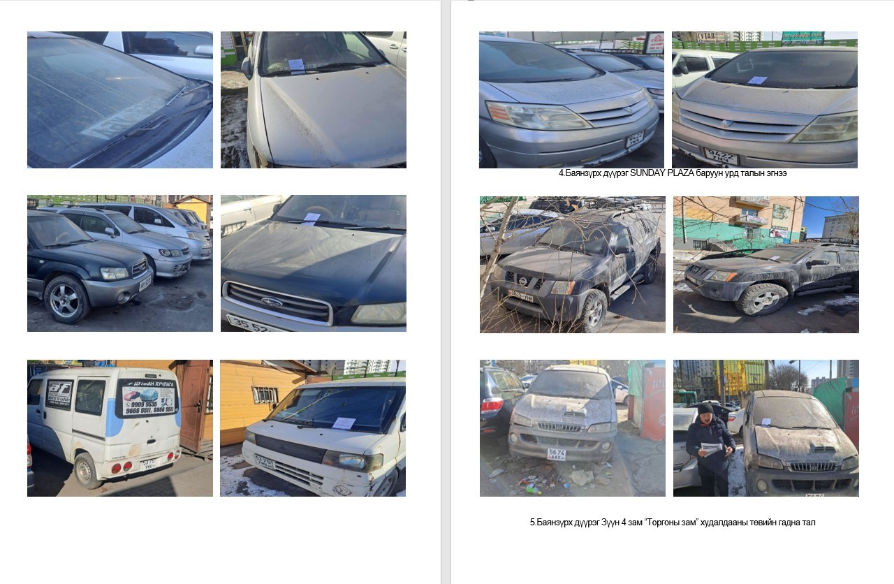 -Одоогийн байдлаар 30 гаруй машиныг олж тогтоогоод байна. Иргэдээс энэ талаар мэдээлэл ирж байгаа, мөн камераар илрүүлж буй тул цаашид ийм машинуудын тоог гаргаад явна. Замын хөдөлгөөний аюулгүй байдлын тухай хууль, Авто замын тухай хууль, Зөрчлийн тухай хуулийн хүрээнд эдгээр машиныг олж тогтоогоод, эздэд нь мэдэгдэл хүргүүлэх арга хэмжээ авч байна. Мэдэгдэл хүргүүлснээс хойш долоо хоногийн хугацаанд машинаа аваагүй бол ачиж журамлана.