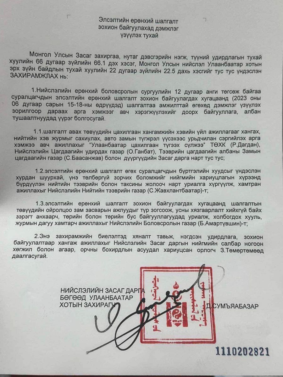 Элсэлтийн ерөнхий шалгалт өгч буй сурагчдадаа шалгалтаа амжилттай өгөхөд нь нийслэлийн удирдлагуудын зүгээс дэмжлэг үзүүлж, бүртгэлийн хуудсыг үндэслэн нийтийн тээврийн бүх чиглэлд үнэгүй үйлчлэх шийдвэр гаргалаа.