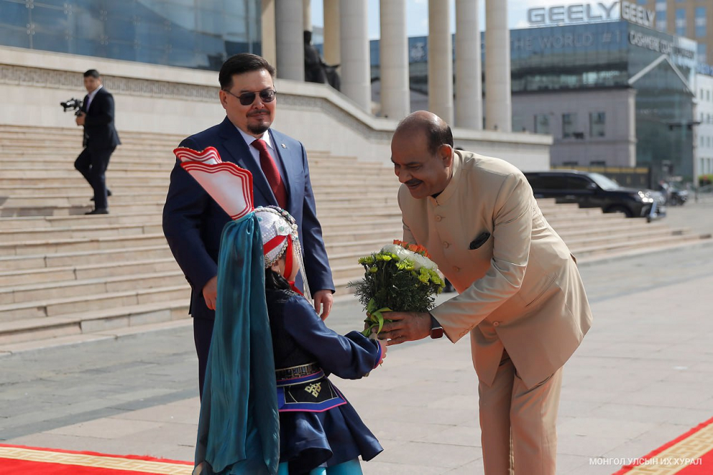 Улсын Их Хурлын дарга Г.Занданшатар өнөөдөр (2023.07.07) Монгол Улсад албан ёсны айлчлал хийж буй Бүгд Найрамдах Энэтхэг Улсын Парламентын доод танхим Лок Сабха-гийн дарга Ом Бирла-г Жанжин Д.Сүхбаатарын талбайд угтан мэндчиллээ.