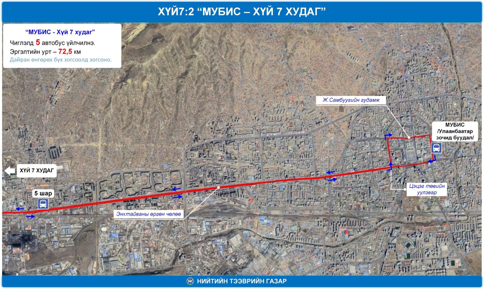 - 06-нд 08:00-22:00 цагийн хооронд “МУБИС-Хүй долоон худаг”, “Төв цэнгэлдэх-Хүй долоон худаг” гэсэн чиглэлд нийтийн тээвэр иргэдэд үйлчилнэ.