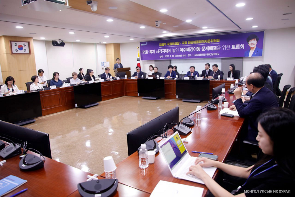 Тэрбээр, уг хэлэлцүүлгийг зохион байгуулснаар БНСУ-д ажиллаж, амьдарч байгаа гадаад иргэд, тэр дундаа Монгол Улсын иргэдийн хүүхдэд нийгмийн болон эрүүл мэндийн тусламж олгох асуудлыг хялбарчлах, эрх зүйн зохицуулалтыг шинэчлэхэд оршиж байгаа юм. Учир нь манай улсад хөдөлмөр эрхэлж буй гадаад иргэдийн цөөнгүй хувь нь оршин суух эрхийн хугацаагаа хэтрүүлсэн байдаг.