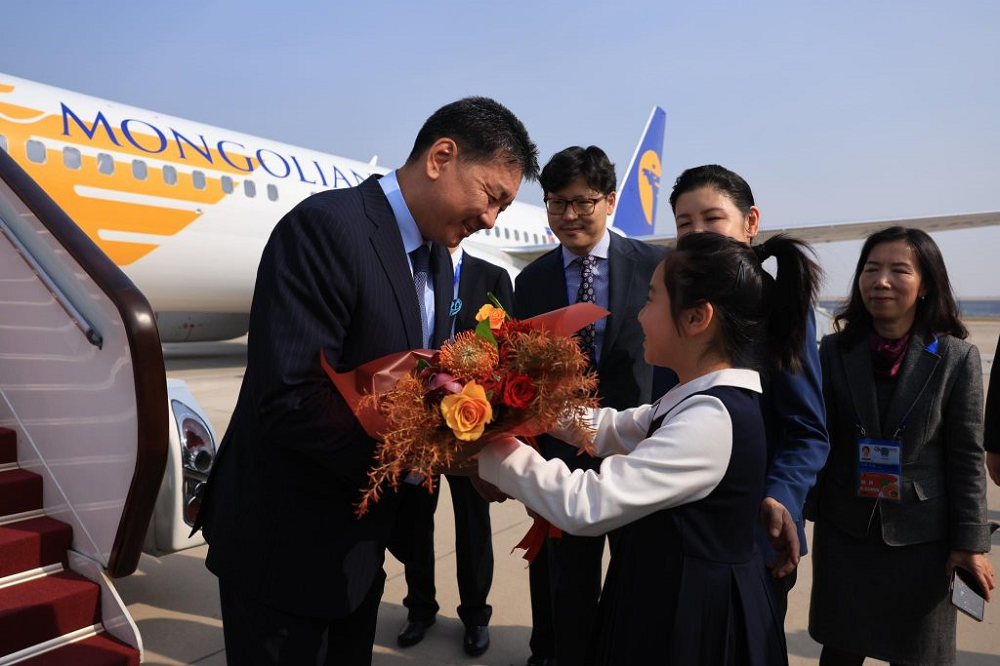 Монгол Улсын Ерөнхийлөгч болон дагалдан яваа төлөөлөгчдийг Бээжин хотын “Капитал” олон улсын нисэх онгоцны буудалд БНХАУ-ын Хууль зүйн сайд Хө Рун, Монгол Улсаас БНХАУ-д суугаа Онц бөгөөд Бүрэн эрхт Элчин сайд Т.Бадрал, БНХАУ-аас Монгол Улсад суугаа Онц бөгөөд Бүрэн эрхт Элчин сайд Шэнь Миньжюань нар угтан авав.