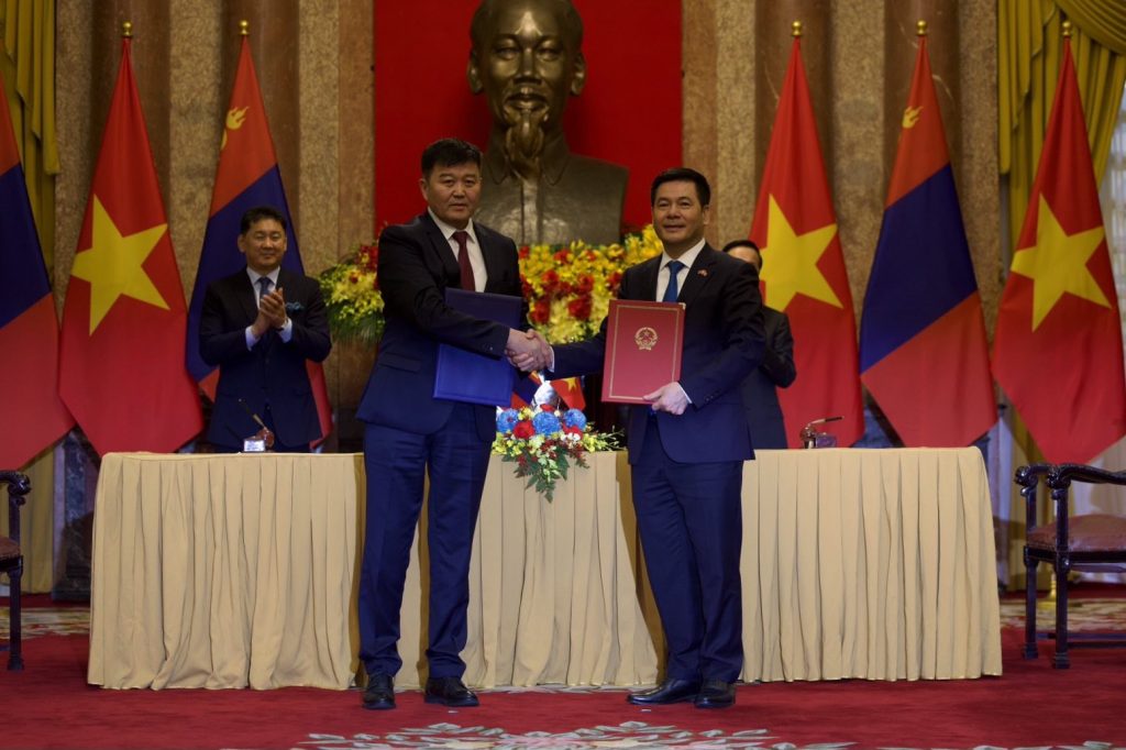 Вьетнамын талаас Аж үйлдвэр, худалдааны сайд Нгуен Хонг Зиен нар тус тус гарын үсэг зурлаа.