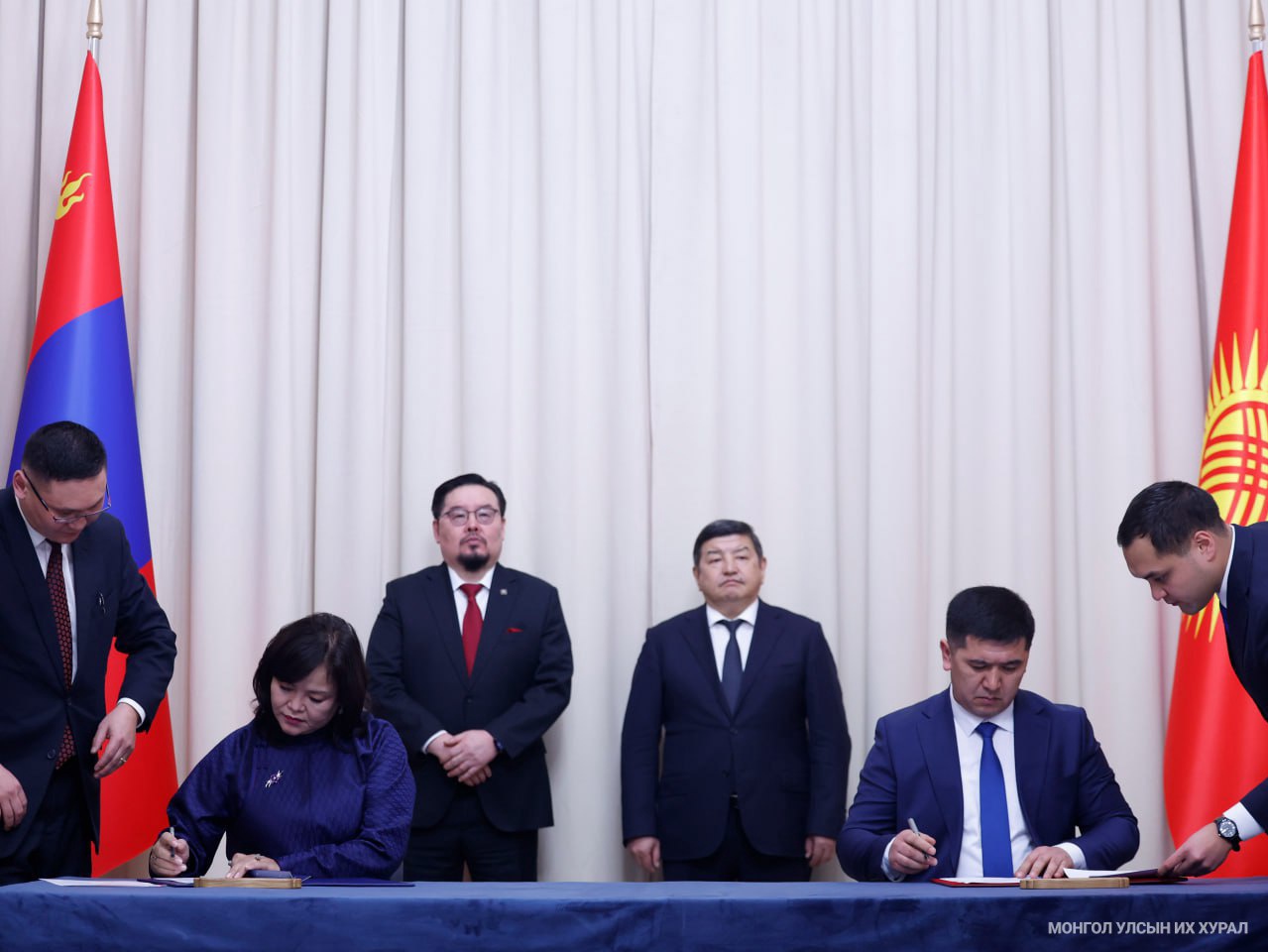 Уулзалтын төгсгөлд Монгол Улсын төв банкны ерөнхийлөгч Б.Лхагвасүрэн, Бүгд Найрамдах Киргиз Улсын Үндэсний банкны дэд дарга Манас Жакыпов нар Монголбанк, Бүгд Найрамдах Киргиз Улсын Үндэсний банк хоорондын харилцан ойлголцлын санамж бичигт, Монгол Улсын Санхүүгийн зохицуулах хорооны дарга Д.Баярсайхан, Бүгд Найрамдах Киргиз Улсын Үндэсний банкны дэд дарга Манас Жакыпов нар Монгол Улсын Санхүүгийн зохицуулах хороо, Бүгд Найрамдах Киргиз Улсын Үндэсний банк хоорондын харилцан ойлголцлын санамж бичигт, Монгол Улсын Засгийн газрын хэрэгжүүлэгч агентлаг Мал эмнэлгийн ерөнхий газрын дарга А.Нарантуяа, Бүгд Найрамдах Киргиз Улсын Усны нөөц, хөдөө аж ахуй, боловсруулах үйлдвэрийн яамны харъяа Мал эмнэлгийн албаны дарга У.Кожобергенов нар Монгол Улсын Засгын газрын хэрэгжүүлэгч агентлаг Мал эмнэлгийн ерөнхий газар, Бүгд Найрамдах Киргиз Улсын Усны нөөц, хөдөө аж ахуй, боловсруулах үйлдвэрийн яамны харъяа Мал эмнэлгийн алба хоорондын мал эмнэлгийн үйлчилгээний салбарын харилцан ойлголцлын санамж бичигт, Монгол Улсын Хадгаламжийн даатгалын корпорацийн Гүйцэтгэх захирлын үүрэг гүйцэтгэгч, Евразийн бүсийн хорооны дарга С.Баатарсүрэн, Бүгд Найрамдах Киргиз Улсын Хадгаламжийн хамгаалалтын агентлагийн захирал К.Букуев нар Монгол Улсын Хадгаламжийн даатгалын корпораци, Бүгд Найрамдах Киргиз Улсын Хадгаламжийн хамгаалалтын агентлаг хоорондын харилцан ойлголцол, хамтын ажиллагааны санамж бичигт, Монгол банкны Нөөцийн удирдлага, санхүүгийн зах зээлийн газрын захирал А.Энхжин, "Киргизалтын" нээлттэй хувьцаат компанийн ТУЗ-ийн дарга К.Абдраймов нар Монголбанк, "Киргизалтын" нээлттэй хувьцаат компани хоорондын санамж бичигт тус тус гарын үсэг зурлаа.