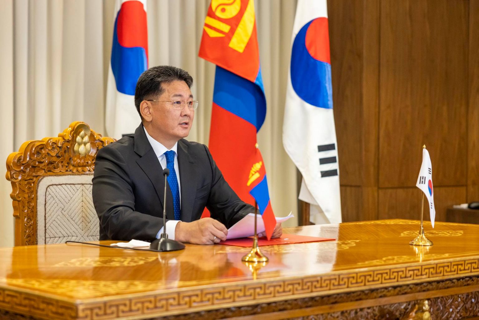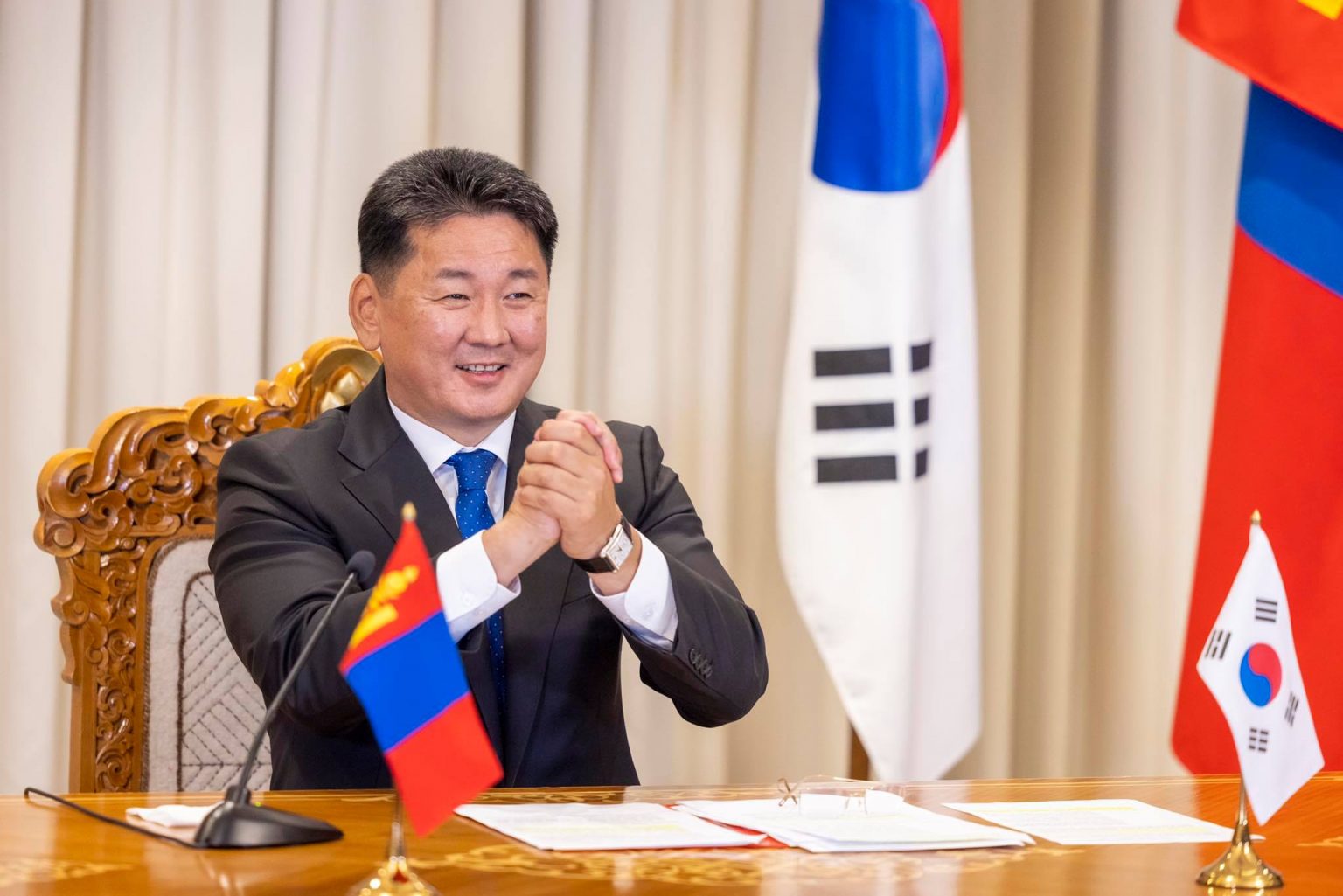 Ерөнхийлөгч У.Хүрэлсүх “манай хоёр улс ардчилал, хүний эрх, эрх чөлөө, зах зээлийн эдийн засаг зэрэг нийтлэг үнэт зүйлсдээ тулгуурлан өнгөрсөн 30 гаруй жилийн хугацаанд хоёр талын харилцааг өнөөгийн өндөр түвшинд хүргэн хөгжүүлж ирснийг дурдаад гуравдагч хөрш БНСУ-тай харилцаа, хамтын ажиллагааг цаашид улам бэхжүүлэн хөгжүүлэхийн төлөө байгаагаа нотлов. Тэрээр Монгол Улсын Ерөнхий сайдын хувиар 2018 онд БНСУ-д хийсэн айлчлалынхаа үеэр Ерөнхийлөгч Мүн Жэ Ин-тэй Сөүл хотноо уулзаж, хоёр улсын “Иж бүрэн түншлэл”-ийн харилцааг “Стратегийн түншлэл”-ийн түвшинд дэвшүүлэн хөгжүүлэх талаар анх ярилцаж байсан нь ажил хэрэг болж байгаад сэтгэл хангалуун байгаагаа илэрхийлэв.