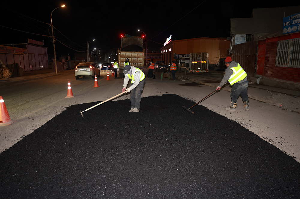 Авто замын урсгал болон ээлжит засварыг шөнийн цагаар гүйцэтгэж байна. Энэ онд нийслэлийн 17 байршилд 19.5 км авто замд ээлжит засвар хийхээр төлөвлөсөн бөгөөд урсгал засвар буюу нүхэн эвдрэл, заадас засварлах ажлыг тогтмол гүйцэтгэж байгаа юм.