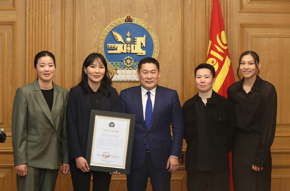 Ерөнхий сайд Л.Оюун-Эрдэнэ Азийн наадам, Азийн аварга шалгаруулах тэмцээнд тогтмол амжилт үзүүлж байгаа үндэсний шигшээ багийн тамирчдад баяр хүргээд хүүхэд, залууст үлгэр дууриал, итгэл найдвар, хүч өгч, дэлхий дахинд улс орноо сурталчлан таниулах үйлсэд онцгой хувь нэмэр оруулж буйд нь талархал илэрхийллээ.
