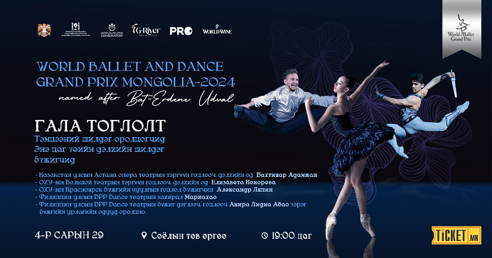 НЗДТГ дэмжлэгтэйгээр “World Ballet and Dance Grand Prix Mongolia – 2024” дэлхийн хэмжээний тэмцээн Улаанбаатар хотноо дөрөвдүгээр сарын 22-29-ний өдрүүдэд Соёлын төв өргөөнд болох гэж байна.
