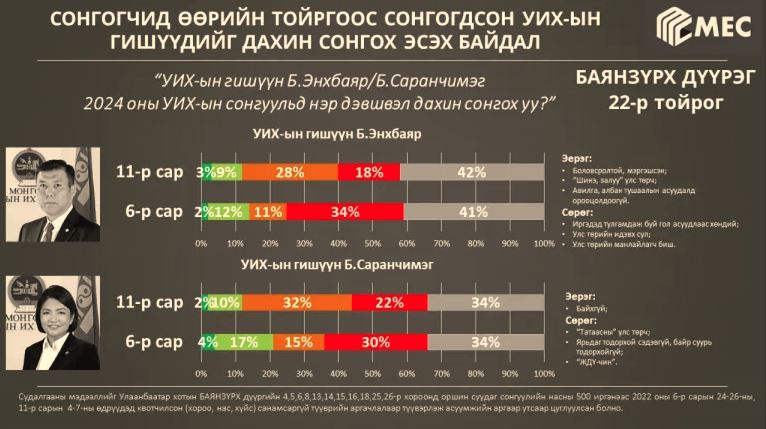 Судалгаа бүхнийг тодотгоод өгнө дөө. MEC агентлагийн судалгаагаар УИХ-ын гишүүн Б.Саранчимэгийг тойргийн иргэд нь ЖДҮ-чин бөгөөд татаасны улс төрч, ярьдаг тодорхой сэдэвгүй, байр суурь тодорхойгүй гэж үнэлжээ. Энэ бол өнгөрсөн жилийн судалгааны нэг хэсэг.