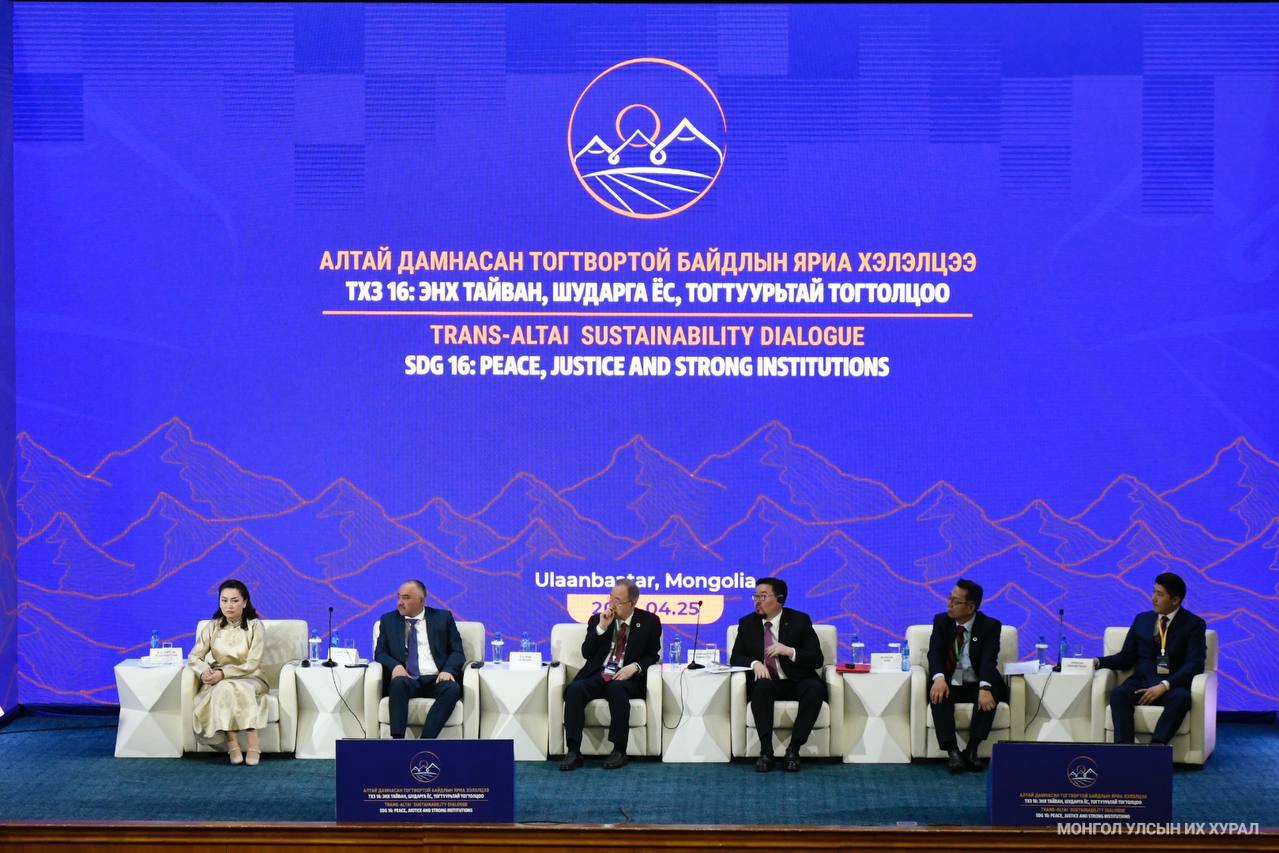 НҮБ-ын Ерөнхий Асамблейн 70 дугаар чуулганаар 2015 онд баталж, 2016 оны нэгдүгээр сарын 1-нээс албан ёсоор дэлхий дахинд хэрэгжиж эхэлсэн “Тогтвортой хөгжлийн зорилго”-ын 16 дахь зорилгын хэрэгжилтийн талаар хэлэлцэх “Алтай дамнасан тогтвортой байдлын яриа хэлэлцээ” хоёр дахь удаагийн олон улсын чуулга уулзалт төрийн ордонд өнөөдөр (2024.04.25) эхэллээ.