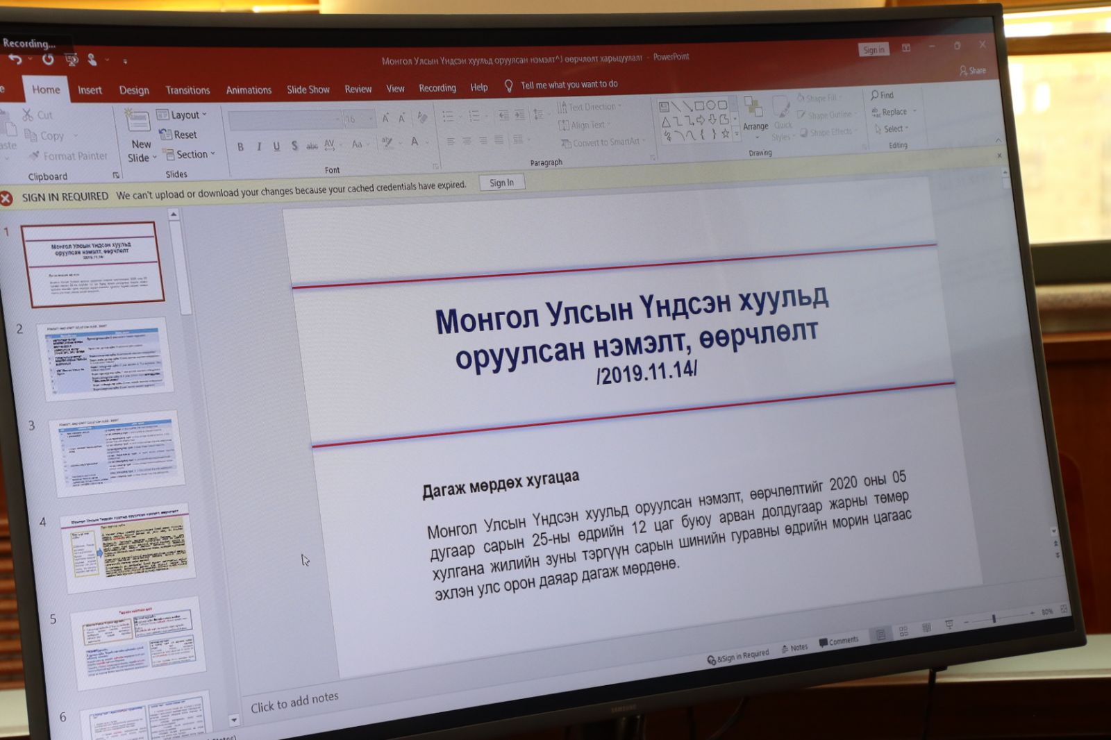 Сургалтаар: Монгол улсын Үндсэн хуулийн нэмэлт, өөрчлөлтийн тухай болон Монгол Улсын Засаг захиргаа, нутаг дэвсгэрийн нэгж, түүний удирдлагын тухай хуулийн шинэчилсэн найруулгын талаар НЗДТГ-ын Хууль эрх зүйн хэлтсийн ахлах мэргэжилтэн С.Энхжаргал дэлгэрэнгүй мэдээлэл өгсөн юм. uploaded pictureМөн Монгол Улсын нийслэл Улаанбаатар хотын эрх зүйн байдлын тухай хуулийн талаар НЗДТГ-ын Хууль эрх зүйн хэлтсийн ахлах мэргэжилтэн Д.Баялагцэнгэл тайлбар таниулгыг хийлээ.
