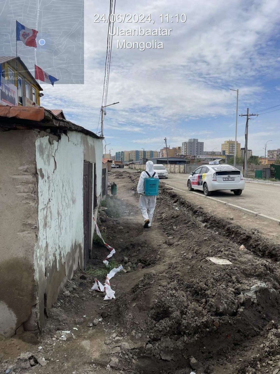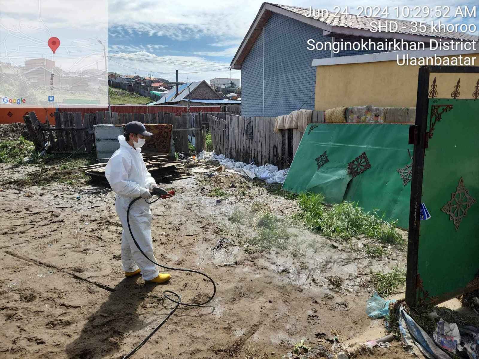 Үргэлжлэн борооны улмаас ус ихээр тогтсон орон сууцны хороолол, гэр хороолол, хүүхдийн тоглоомын талбай, үерийн далан шуудуу, иргэд ихээр зорчдог зах худалдааны төв болон хогийн цэгүүдэд халдварт өвчнөөс урьдчилан сэргийлэх зорилгоор ариутгал халдваргүйжүүлэлт хийж байна. Өнөөдрийн байдлаар таван аж ахуй нэгж 7.2 сая ам метр талбайд ариутгал халдваргүйжүүлэлт хийгээд байна.