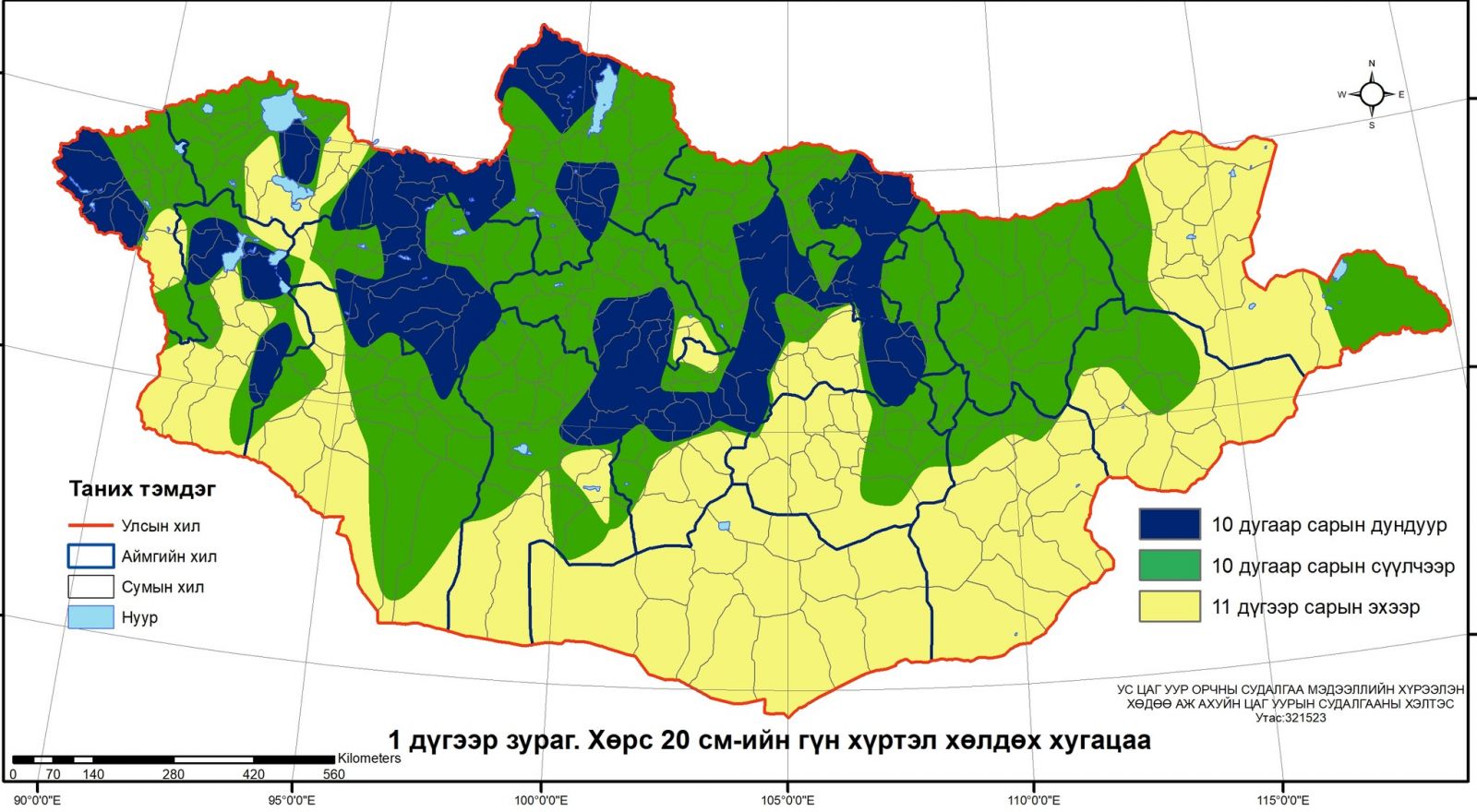 Цаг уурын байгууллагаас хөрс 20 см-ийн гүн хүртэл хөлдөж эхлэх хугацааг цаг агаарын бодит болон урьдчилсан мэдээнд үндэслэн тооцоолон гаргасан байна.