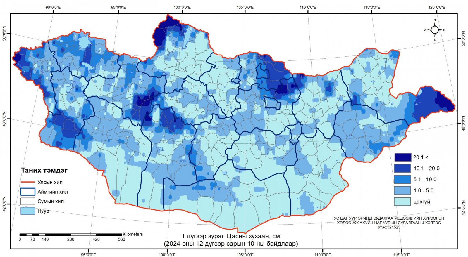 Үүнээс Алтай, Хангай, Хэнтий, Хөвсгөлийн уулархаг нутаг, Тамсагийн хоолойгоор 11-22 см, говь, тал хээрийн зарим сумдын нутгаар 1-10 см зузаан цастай байна.