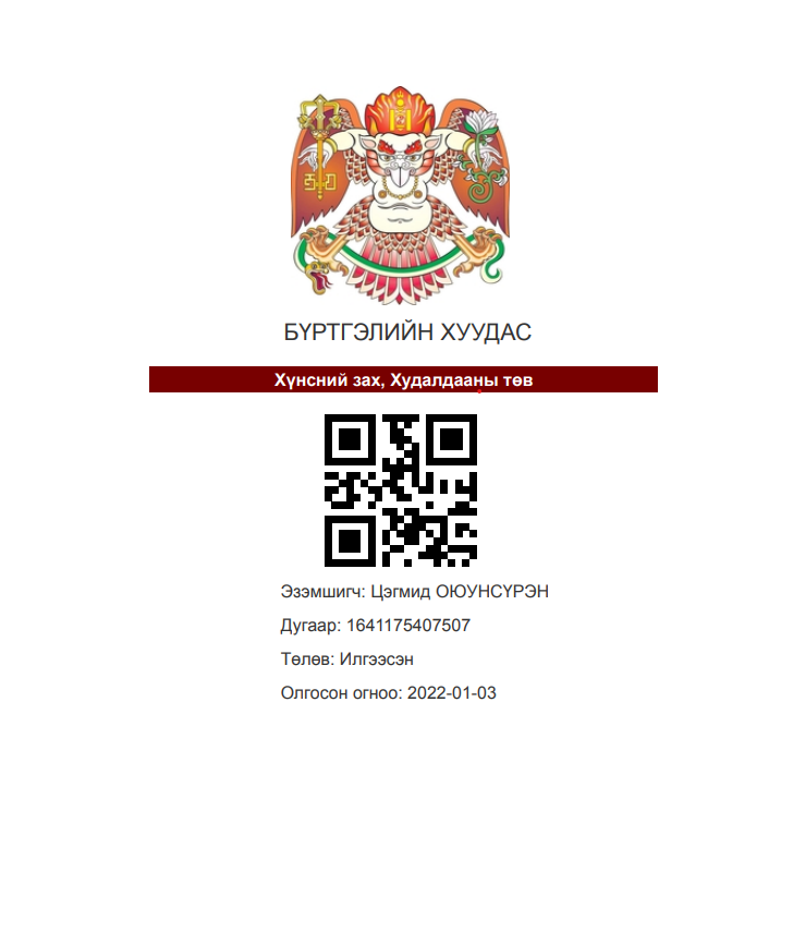 Холбогдох баримт бичгийн мэдээллийг оруулж “Үргэлжлүүлэх” товчийг дарна. Мөн бүрдэл баримт бичгийг өмнө авч байсан эсэх мэдээллийг оруулснаар холбогдох байгууллагуудын албан хаагчид тантай ажлын үйлчилгээ эрхлэх явцад ажлын тав хоногийн дотор холбогдоно.