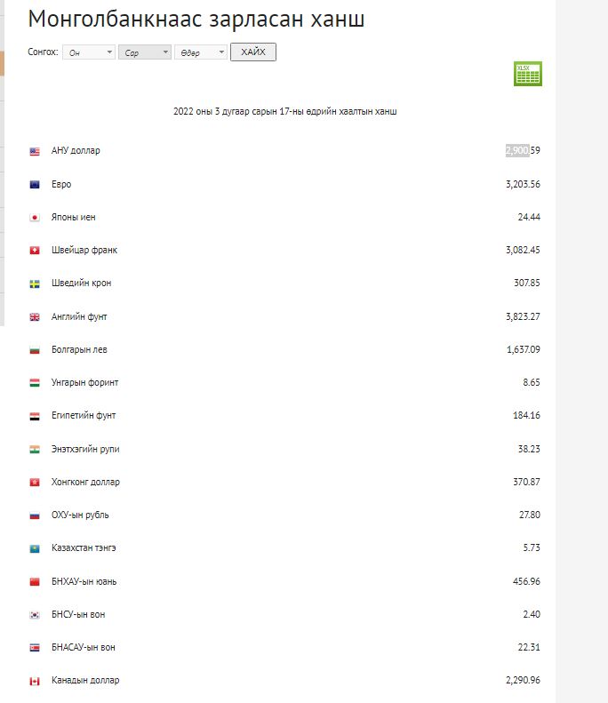 Доллар 3000 төгрөг руу дөхөж байна. Өчигдөр Монголбанкны хаалтын ханшаар ам.доллар 2900,59 төгрөгт хүрчээ. Евро 3203₮, юань 456₮, вон 2.40 төгрөгт хүрээд байна.