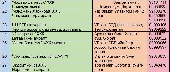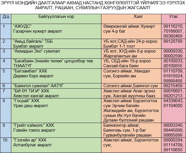 АМРАЛТЫН ҮЙЛЧИЛГЭЭ ҮЗҮҮЛЭХ БАЙГУУЛЛАГЫН ЖАГСААЛТ