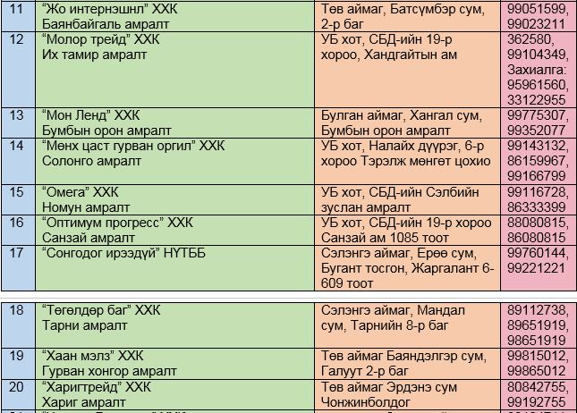 362580, 99104349, Захиалга: 95961560, 33122955 |