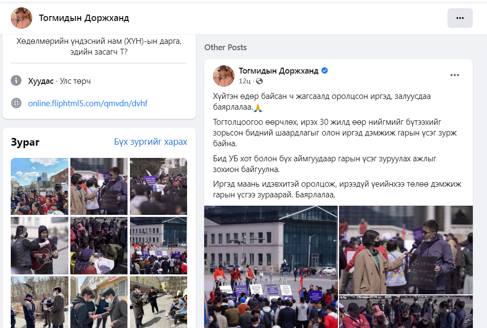 Уг жагсаал дууссаны дараа УИХ-ын гишүүн Т.Доржханд сошиал орчинд ийнхүү хэлжээ