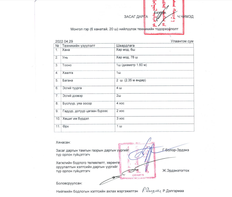 Увс аймгийн засаг дарга Ч.Чимэдэд Монгол 6 ханатай гэр зайлшгүй хэрэгтэй болсон бололтой. 100 сая төгрөгөөр 20 ширхэг 6 ханатай гэрийг худалдаж авна гэвэл нэг гэрийн үнэ зах зээлийн өндөр ханшаар тооцвол 5 сая төгрөг болж байна.