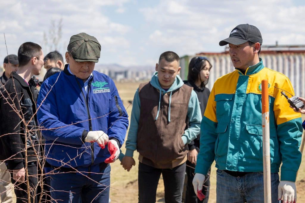 Монгол Улсын Ерөнхийлөгч У.Хүрэлсүх хаврын мод тарилтын нээлтэд оролцож, залуустай хамт “Хосуудын төгөл”-д мод тарилаа.