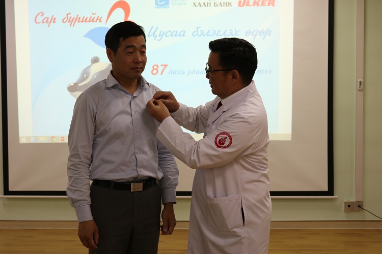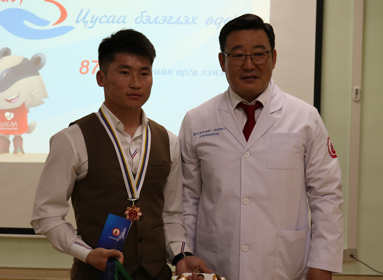 Тэгвэл өнөдөөр буюу 2022 оны 06-р сарын 03-ны өдөр зохион байгуулагдсан арга хэмээний үеэр 70 буюу түүнээс дээш удаа цус, цусны бүрэлдэхүүн хэсгээ бэлэглэсэн “Хүндэт донор Ц.Амарсанаа “ХҮРЭЛ ДОНОР” цол тэмдэг, “Хүндэт донор Б.Долгормаа “Бахархал 50”, Г.Гэлэгдорж, Б.Өнөрцэцэг нарт ”Бахархал 40” тэмдэг. Мөн цусны донор Б.Хүдэртулга, Ч.Дхагвасүрэн, Т.Баярсайхан нарт “Бахархал 30” ”Бахархал 20”, “Бахархал 10” тэмдгийг ЦССҮТ-ийн ерөнхий захирал Б.Эрдэнэбаяр гардуулж баяр хүргэлээ. Болзол хангаж шагнагдсан доноруудыг ивээн тэтгэгч Хаан банк, ULKER MONGOLIA брэндын гарын бэлэг, СҮҮ ХК өөрийн бүтээгдэхүүний дээжээр урамшуулж хамтран ажиллаа.