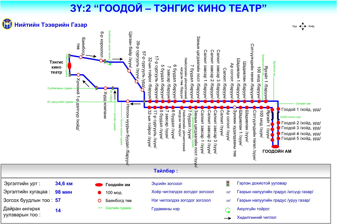 ЗҮ:2 “Гоодой-Тэнгис кино театр” чиглэлийн автобус /1 цаг тутамд/