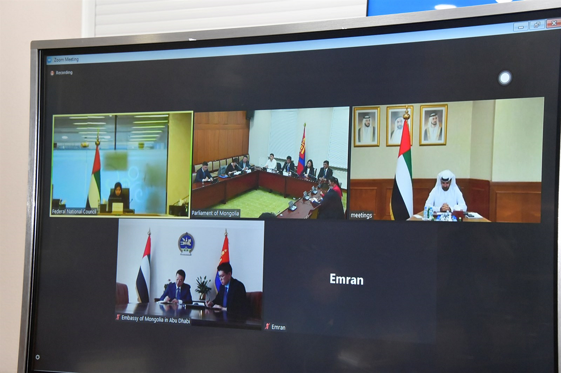 Уулзалтын эхэнд Улсын Их Хурлын гишүүн, Улсын Их Хурал дахь Монгол-Арабын Нэгдсэн Эмиратын парламентын бүлгийн дарга С.Бямбацогт Монгол-Эмиратын парламентын найрамдлын бүлгүүдийн анхдугаар цахим уулзалт болж байгаад баяртай буйгаа илэрхийлээд Холбооны Үндэсний Зөвлөлийн гишүүдийг Монгол Улсад тааламжтай цагтаа айлчлахыг урив. Тэрбээр, өнгөрсөн жил Арабын Нэгдсэн Эмират Улсын Үндэсний баярын 50 жилийн ой болон Монгол-Эмиратын хооронд дипломат харилцаа тогтоосны 25 жилийн ой тохиосон цаг үед Монгол Улс Арабын Нэгдсэн Эмират Улсад Элчин сайдын яамаа нээснийг онцлоод Монгол Улс АНЭУ-тай явуулж буй хамтын ажиллагаандаа өндөр ач холбогдол өгч, бүхий л салбарын харилцааг өргөжүүлэн, хөгжүүлэх сонирхолтой байдгийг тэмдэглэсэн юм.