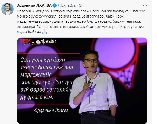 Э.Лхагва нь Монгол ТВ-д сэтгүүлчээр ажиллаж байхдаа панам дахь оффшор данстай Монгол улс төрчдийн талаар мэдээллийг нийтэлж байсан юм. Тэрбээр нийтлэлч Баабарын жиргээнд ийн тайлбар өгсөн байна.