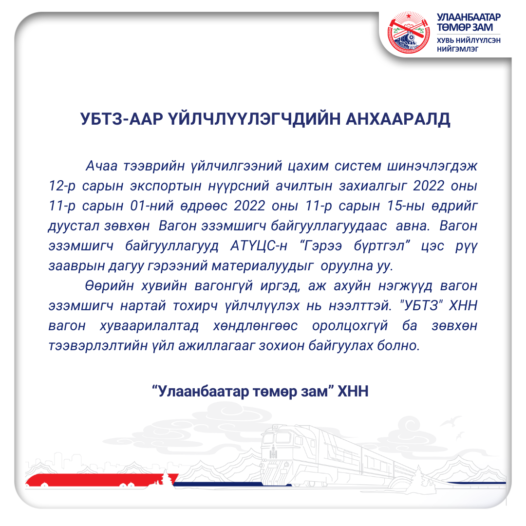 "Улаанбаатар төмөр зам" Орос-Монголын хувь нийлүүлсэн нийгэмлэг нь орон нутгийн болон олон улсын зорчигч тээврийн галт тэргээр зорчих тарифаа 50 хувиар нэмжээ. Түүнчлэн тээвэрлэлтийн үнээ нэмж эхэлжээ.
