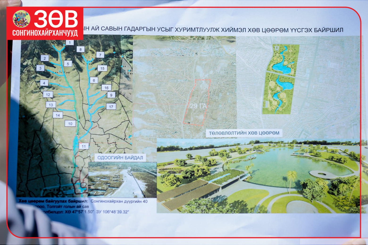 Сонгинохайрхан дүүргийн үерт өртөх эрсдэл бүхий булаг, хөрсний усны халиа үүсдэг хэд, хэдэн хороодыг дамнасан 42 км үерийн далан, суваг, шуудуу барих зураг төсөл хийх газруудыг судаллаа.