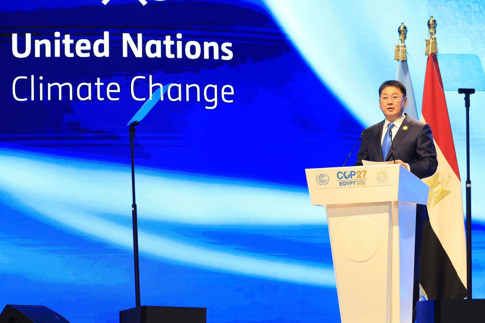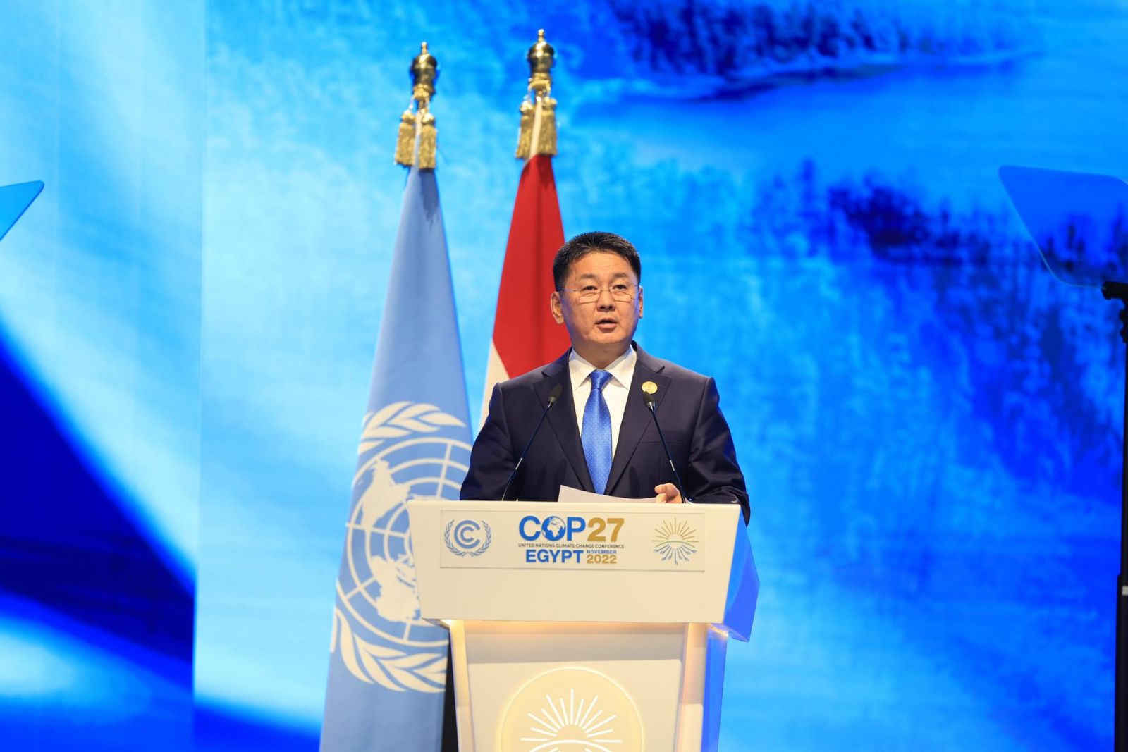 Монгол Улсын Ерөнхийлөгч Ухнаагийн Хүрэлсүх Арабын Бүгд Найрамдах Египет Улсын Шарм Эл-Шейх хотноо болж байгаа Уур амьсгалын өөрчлөлтийн асуудлаарх дэлхийн удирдагчдын дээд түвшний уулзалтад үг хэллээ.