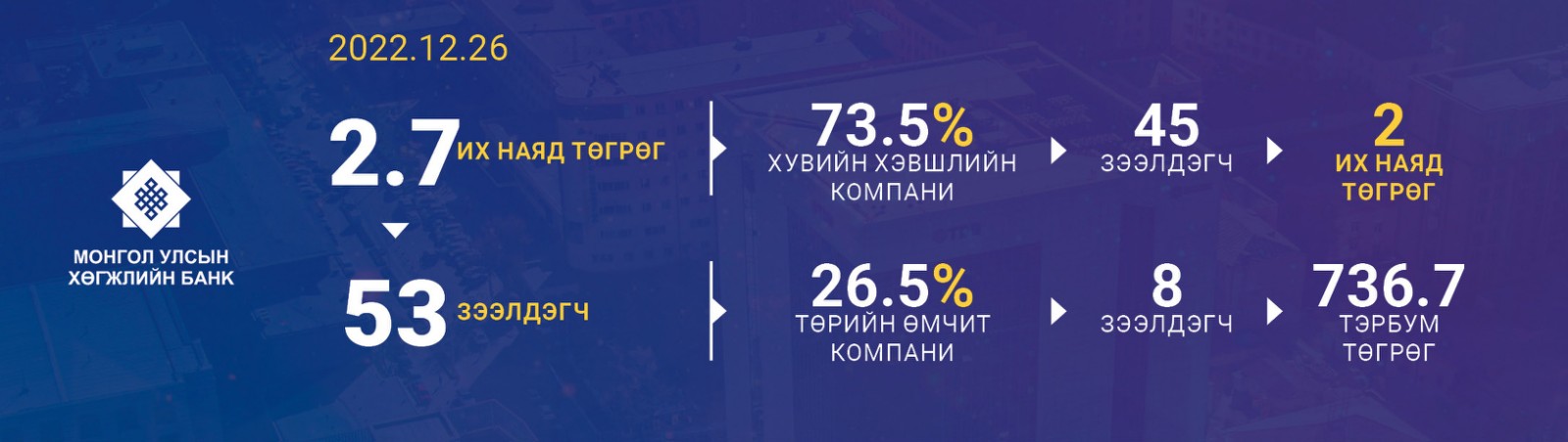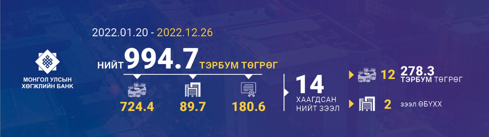 Нийт 14 зээлдэгчийн зээл хаагдсанаас 12 зээл нь бэлнээр буюу 278.3 тэрбум төгрөгөөр, 2 зээл нь өмчлөх бусад үл хөдлөх хөрөнгөөр хаагдаад байна.