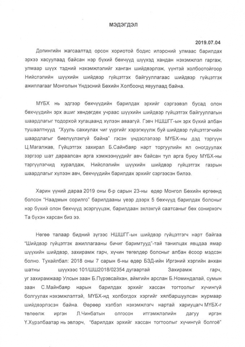 Допинг хэрэглэсэн гэж "ГҮТГҮҮЛСЭН" Б.Суманчулуун, Н.Адъяабат нарын НАЧИН ЦОЛЫГ сэргээлээ
