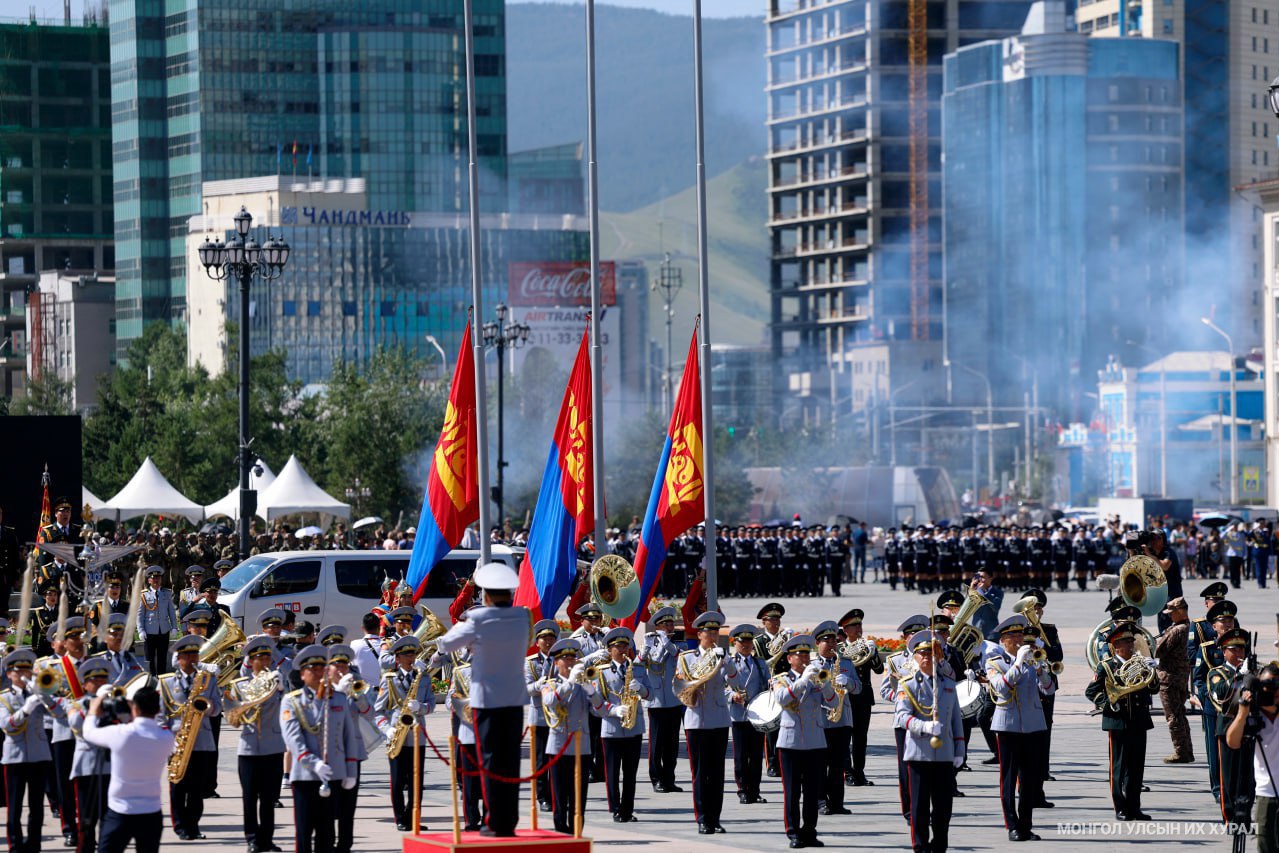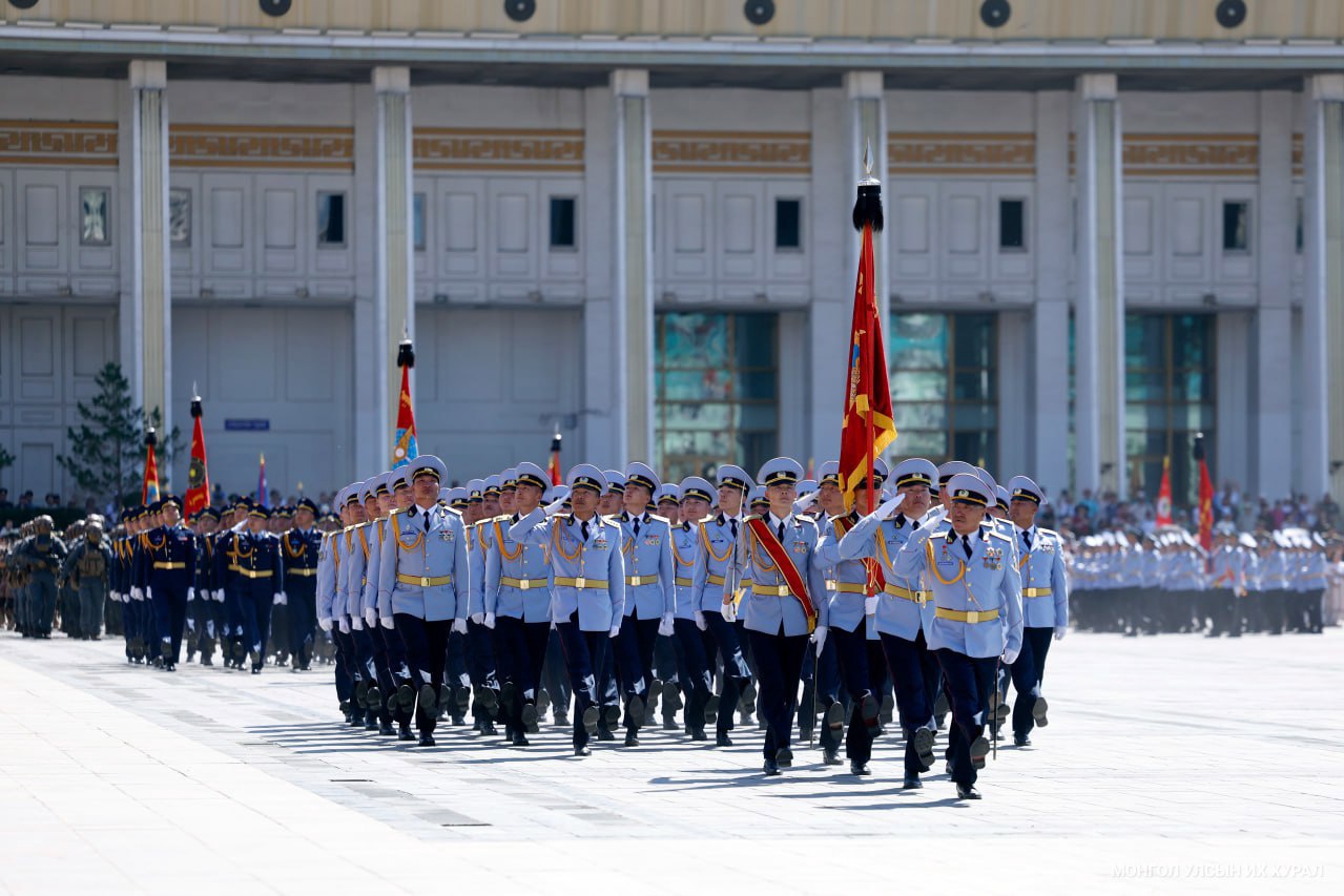 Төрийн далбааны өдөрт зориулсан цэргийн ёслолын жагсаалд Батлан хамгаалах яам, Зэвсэгт хүчний жанжин штаб, Хил хамгаалах ерөнхий газар, Онцгой байдлын ерөнхий газар, Дотоодын цэргийн штаб, Шүүхийн шийдвэр гүйцэтгэх ерөнхий газар, Төрийн тусгай хамгаалалтын газар, Цагдаагийн ерөнхий газар,Тусгай хүчний цэргийн командлал, Үндэсний батлан хамгаалахын их сургууль, Дотоод хэргийн их сургууль зэрэг төрийн цэргийн болон хууль сахиулах 15 байгууллагын 1500 гаруй алба хаагч оролцсон бөгөөд жагсаалыг Зэвсэгт хүчний Жанжин штабын нэгдүгээр орлогч дарга, Улаанбаатар цэргийн хүрээний дарга, бригадын генерал Ж.Өсөхбаяр командлав.