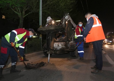 Авто замын нүхэн эвдрэлийг шөнийн цагаар засаж байна