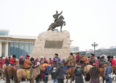Уяачид улсынхаа төв талбай дээр, бүр морьтойгоо жа...
