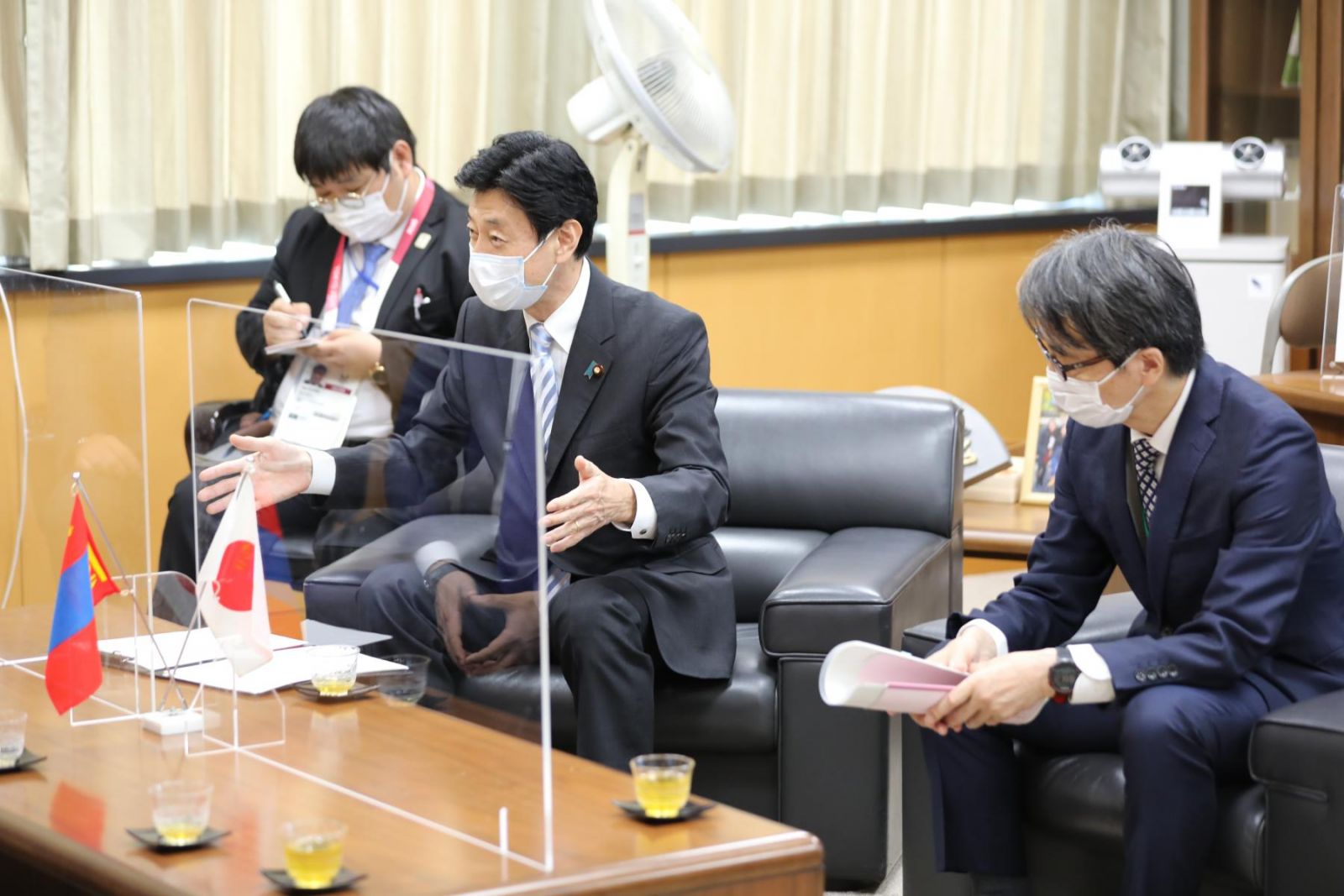 Монгол Улсын Ерөнхий сайд Л.Оюун-Эрдэнэ Япон Улсын Эдийн засгийн сэргээн босголт “КОВИД-19” цар тахалтай тэмцэх асуудал эрхэлсэн сайд Я.Нишимура, Японы ХӨСҮТ-ийн захирал Т.Вакида нарыг хүлээн авч уулзан, “КОВИД-19”-ийн нөхцөл байдал, төр засаг, эрүүл мэндийн байгууллагаас авч буй арга хэмжээ, цар тахалтай тэмцэх чиглэлд хоёр орны хамтын ажиллагааг өргөжүүлэх чиглэлд дэлгэрэнгүй санал солилцов.