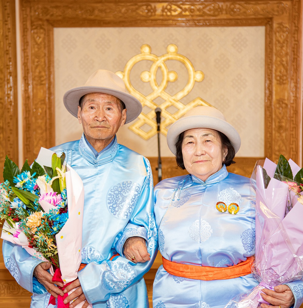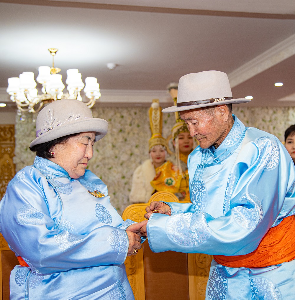 Дүүргийн гэрлэх ёслолын өргөөнд өнөөдөр 31-р хорооны залуу хос Ц.Батболд, Д.Отгонцэцэг, 3-р хороонд 59 жил ажиллаж, амьдарсан, 8 хүүхэд өсгөж хүмүүжүүлсэн, 48 жил ханилсан О.Нямаа, Н.Норжмаагийн Алтан хуримын ёслолын үйл ажиллагааг зохион байгуулж, хүндэтгэл үзүүллээ.