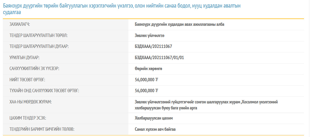 Мөн тэрбээр 2021 онд санал бодлыг танадаж, нууц худалдан авалтын судалгаа явуулахын тулд 56 сая төгрөгийн ТЕНДЕР зарлаж байсан удаатай аж. Дүүрэг нь "НҮҮРЭЭ УГААДАГГҮЙ" хүүхэд шиг, нийслэлийн хамгийн ХӨГЖИЛ МУУ-тай дүүргээр алдаршчихаад байхад, энэ мэт зангаасаа болж суудлаас "ховхорлоо" Н.Баярмөнх өө... Төлөөлөгчдийг чинь ч буруутгах аргагүй бололтой.