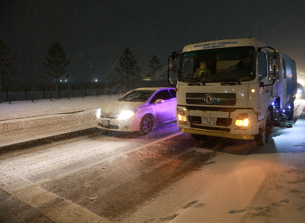 Өчигдөр буюу дөрөвдүгээр сарын 1-нээс нийслэл хот орчмоор цас орж, цаг агаар хүндэрсэн тул холбогдох албаныхан шаардлагатай арга хэмжээг авч, газар дээр нь ажиллалаа. Тухайлбал, цас орж эхэлснээс хойш нийтийн эзэмшлийн гудамж, зам талбайд Хот тохижилтын газар ОНӨААТҮГ болон дүүргүүдийн тохижилт үйлчилгээний компани, гэрээт аж ахуйн нэгж, байгууллагуудаас нийт 190 ажилтан тусгай зориулалтын 45 машин, техниктэйгээр уртасгасан цагаар ажилласан байна.