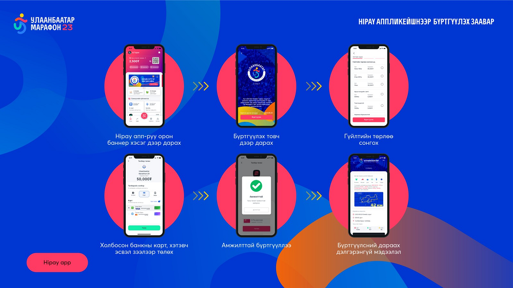 Нийслэлийн Засаг даргын захирамжаар “Улаанбаатар марафон-2023” олон улсын гүйлтийг зургаадугаар сарын 3-нд нийслэл хотноо найм дахь удаагаа зохион байгуулах гэж буй. Тус марафонд гүйх иргэдийг https://ubmarathon.hipay.mn/ цахим хуудас болон “Hipay” аппликейшнаар тавдугаар сарын 30-ныг дуустал бүртгэх юм.