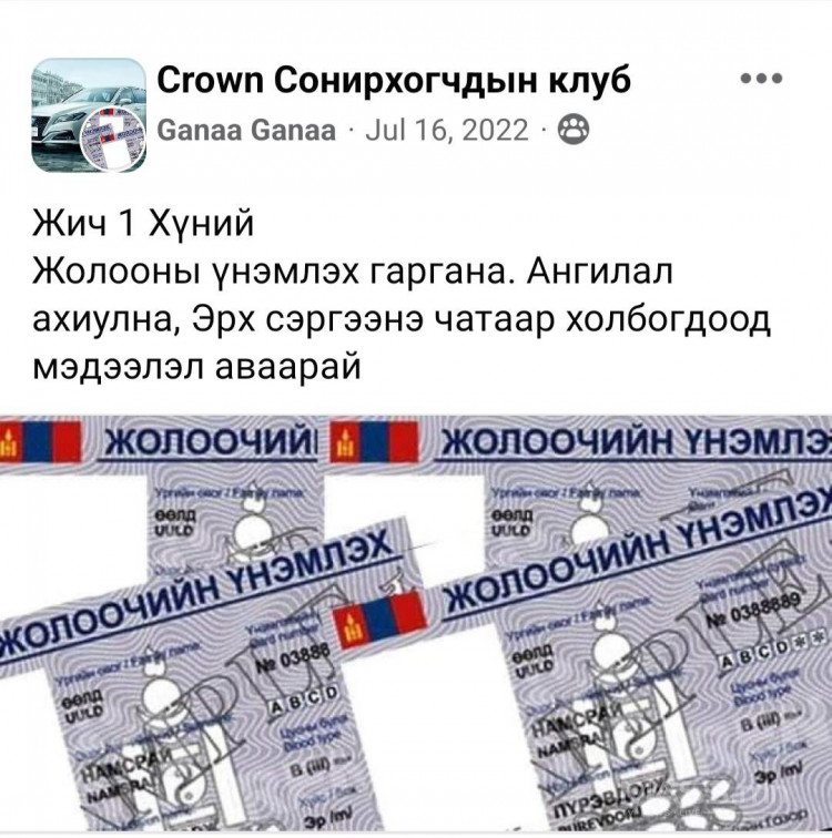 Цагдаагийн байгууллагаас цахим орчинд “жолооны үнэмлэх гаргана, ангилал дарж өгнө, эрх сэргээнэ” гэх мэдээллийг шалгахад Хэнтий аймагт оршин суух бүртгэлтэй, эрхэлсэн тодорхой ажилгүй иргэн Г.О гэгч нь 130 иргэнээс жолооны үнэмлэх гаргаж өгнө, ангилал нэмэгдүүлнэ гэж залилан мэхэлж 62.470.000 төгрөгний хохирол учруулсан хэрэгт мөрдөн шалгах ажиллагааг явуулж шүүхэд шилжүүлжээ.