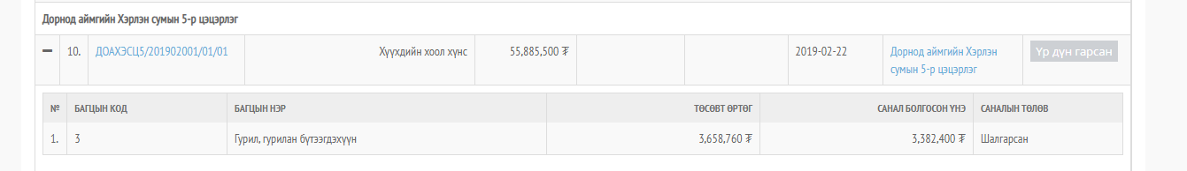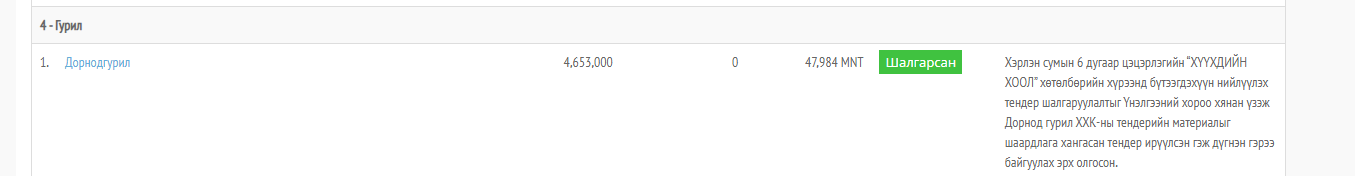 -Дорнод аймгийн Хэрлэн сумын Хан-Уул цогцолбор сургуулийн дотуур байрны хүүхдийн хоол хүнс нийлүүлэх тендер: 3.9 сая төгрөг