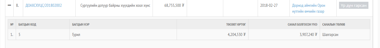 -Дорнод аймгийн Хэрлэн сумын наймдугаар дунд сургууль “Үдийн цай” хөтөлбөрийн хүнс, гурил, гурилан бүтээгдэхүүн нийлүүлэх тендер: 6.2 сая төгрөг