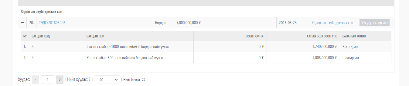 -Хөдөө аж ахуйг дэмжих сангийн Хөтөл салбарт 800 тонн нийлмэл бордоо нийлүүлэх тендер- нэг тэрбум төгрөгийн тендер тус бүр авчээ.