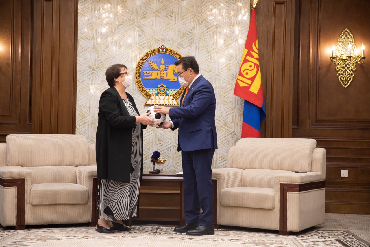 Уулзалтын төгсгөлд хатагтай Стефаны Бурри, Улсын Их Хурлын даргад монгол сарлагийн арьсаар хийсэн хөлбөмбөгийн бөмбөг бэлэглэв. Энэ бол “Хариуцлагатай Нүүдэлчид” стандартын брэнд бүтээгдэхүүний нэг бөгөөд Швейцарын хөгжлийн агентлагаас хэрэгжүүлж буй “Ногоон алт”, “Малын эрүүл мэнд” төслийн хүрээнд үйлдвэрлэсэн гэдгийг танилцуулав. Түүнчлэн олон улсын хэмжээнд сая сая үзэгч, шүтэн бишрэгчтэй “The HU” хамтлаг ч энэхүү төслийг дэмжин, хамтран ажиллаж байгаа талаар хатагтай Стефаны Бурри мэдээлэл өгөв.