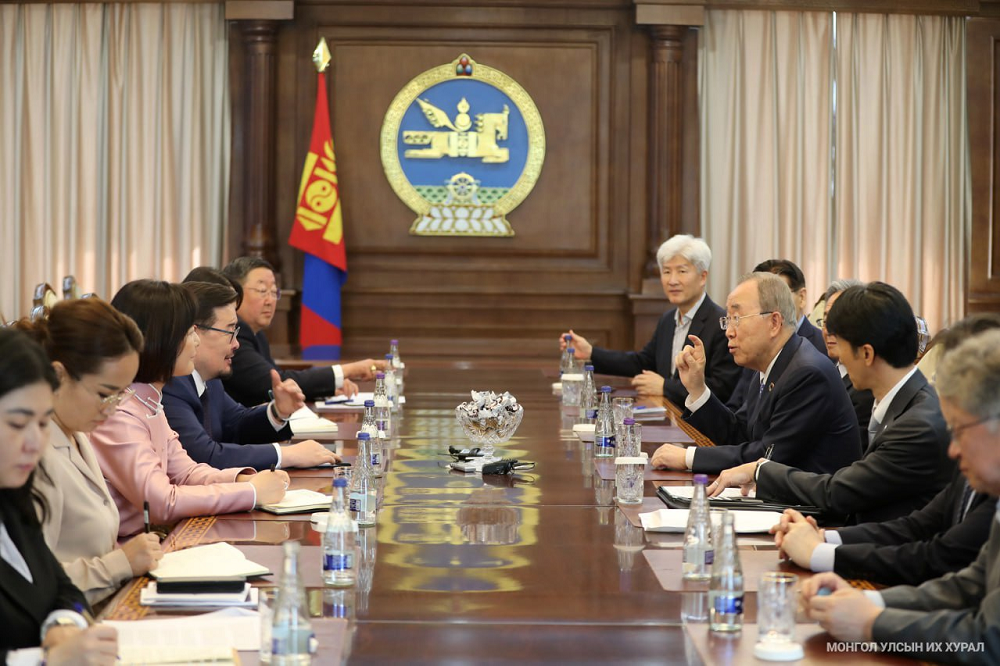 Ноён Бан Ги Мун Монгол Улсын Их Хурал, АНУ-ын Стэнфордын их сургууль, “Бан Ги Мун” сан, БНСУ-ын Эва Эмэгтэйчүүдийн их сургуультай хамтран зохион байгуулж буй “Алтай дамнасан тогтвортой байдлын яриа хэлэлцээ-Жендэрийн эрх тэгш байдал ба тогтвортой хөгжил” олон улсын чуулга уулзалтад оролцохоор Монгол Улсад хүрэлцэн ирээд байгаа юм.